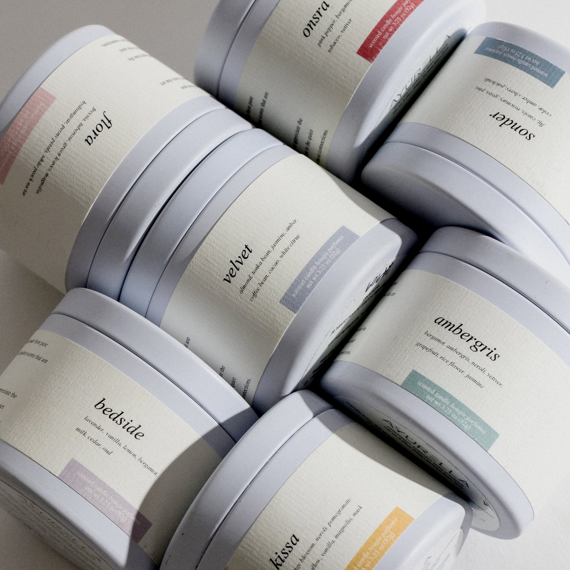 Our signature tin set includes one tin of each 7 scents in our signature line.